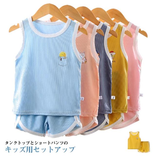 部屋着 子ども キッズ タンクトップ 女の子 ショートパンツ ノースリーブ 薄手 子供 部屋着 涼しい スポーツウェア トレーニングウェア セットアップ 上下セット こども服 Tシャツ 男の子 通気 かわいい ベビー 幼児 部屋着 小学生 運動着 幼稚園 保育園 ウエストゴム