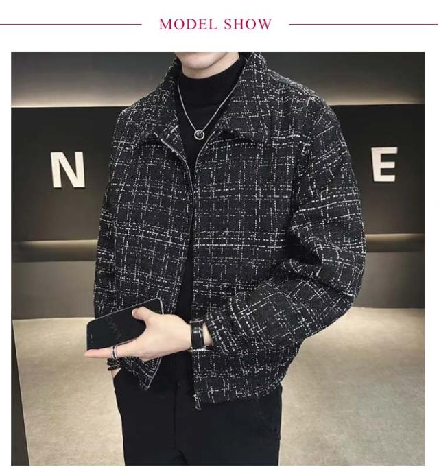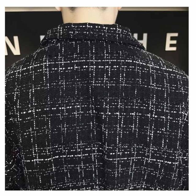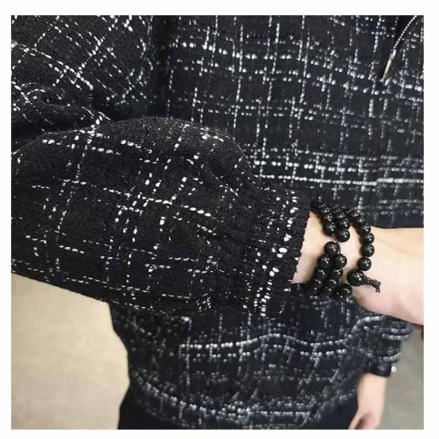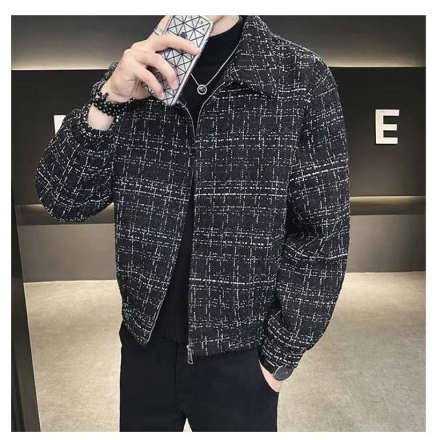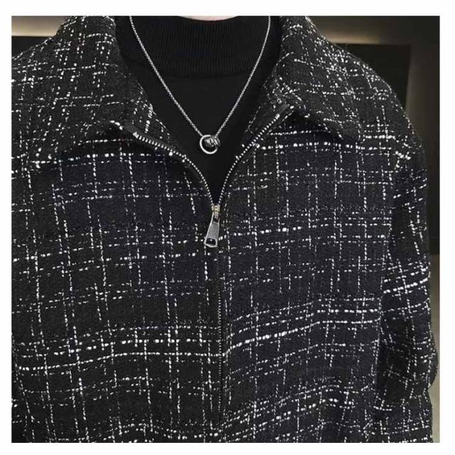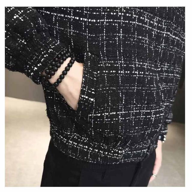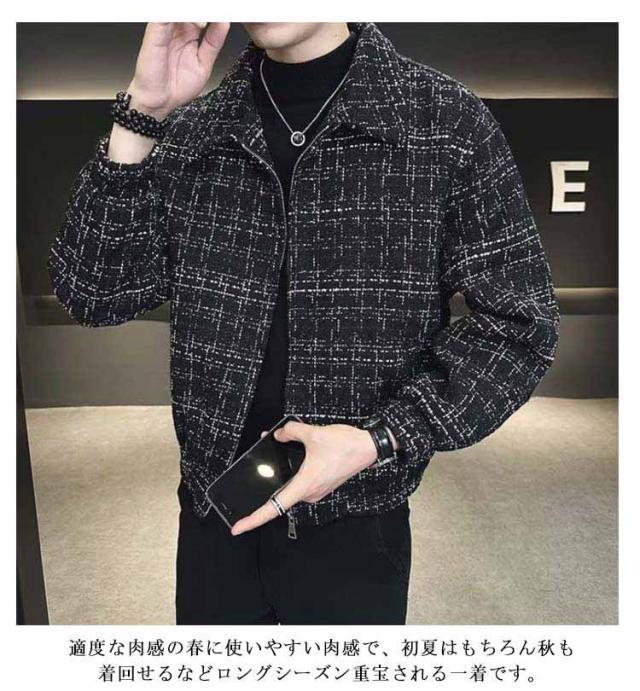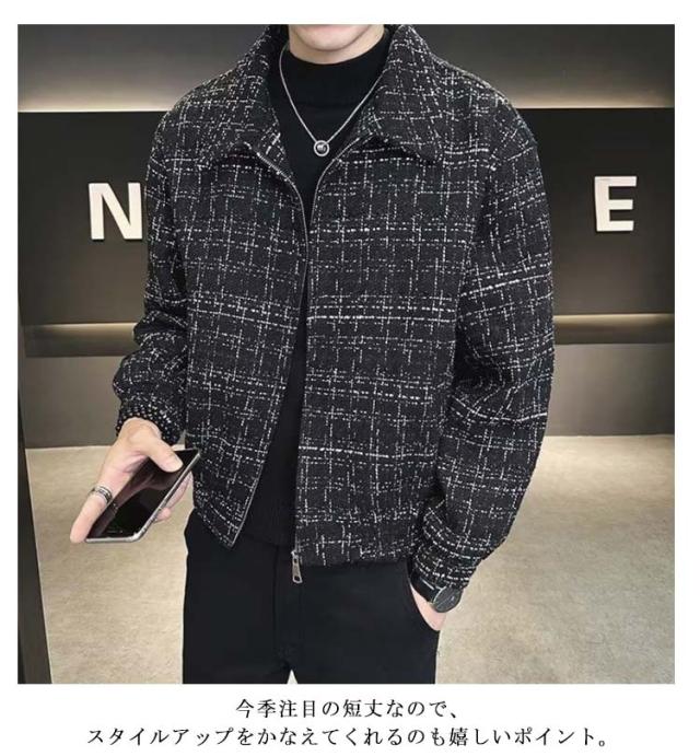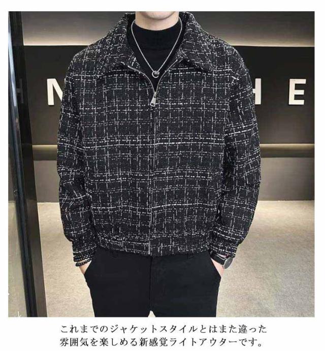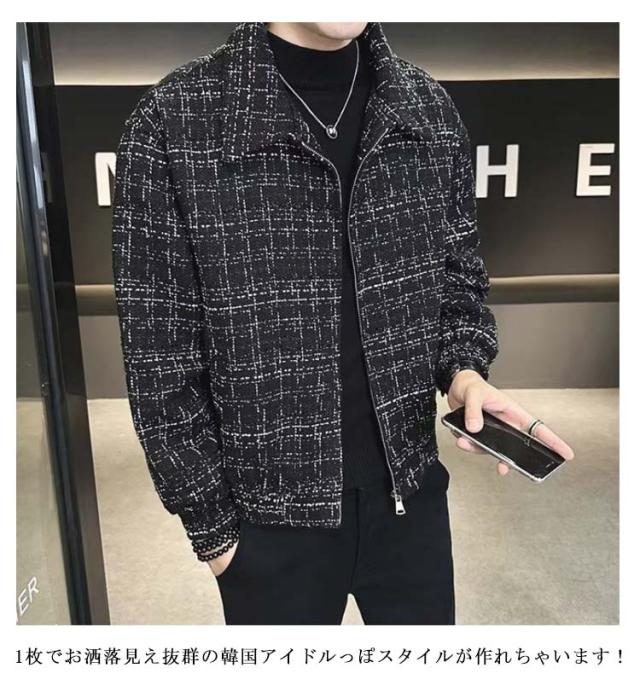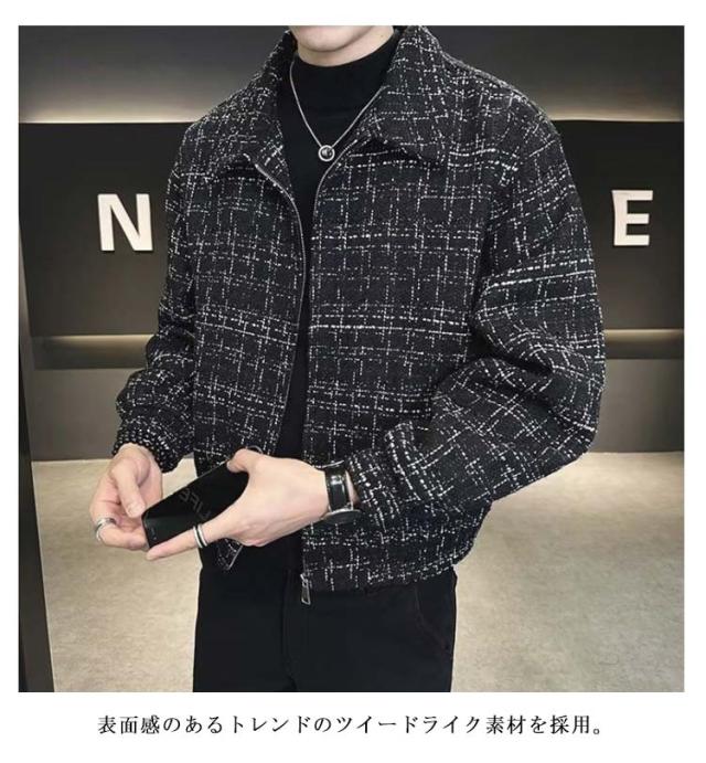 ツイードジャケット ブルゾン 秋 スタンドネック 春 春アウター 通勤 ショート丈 スプリングコート メンズ ジャケット ツイードジャケット ジップアップ オフィス カジュアル 大人 カジュアルジャケット 黒 ブラック 大きいサイズ おしゃれ 韓国系 メンズジャケット