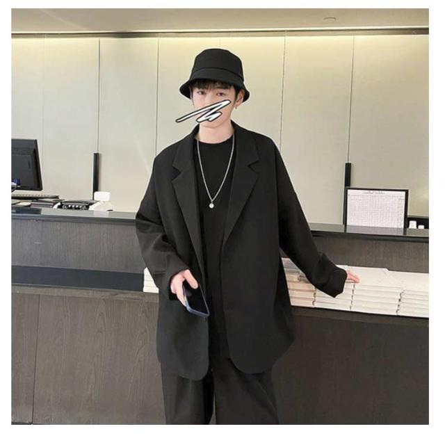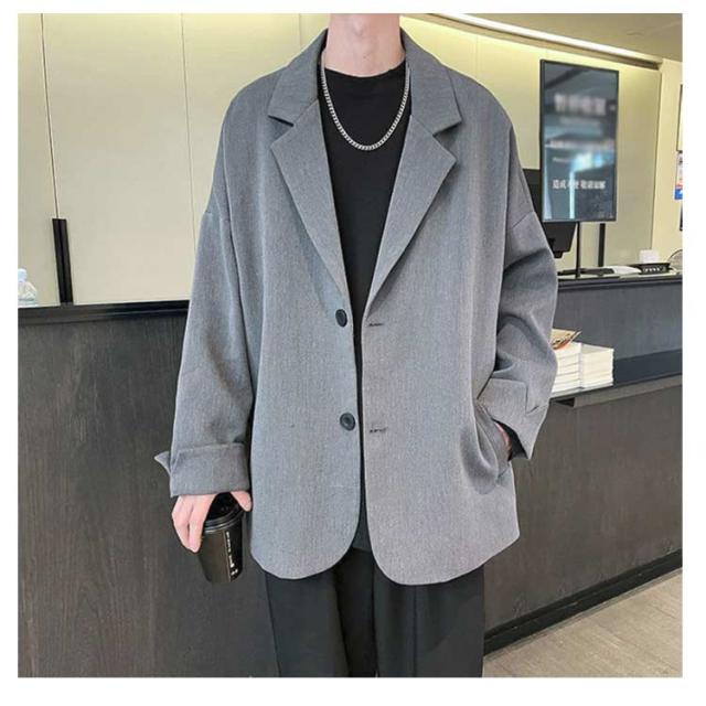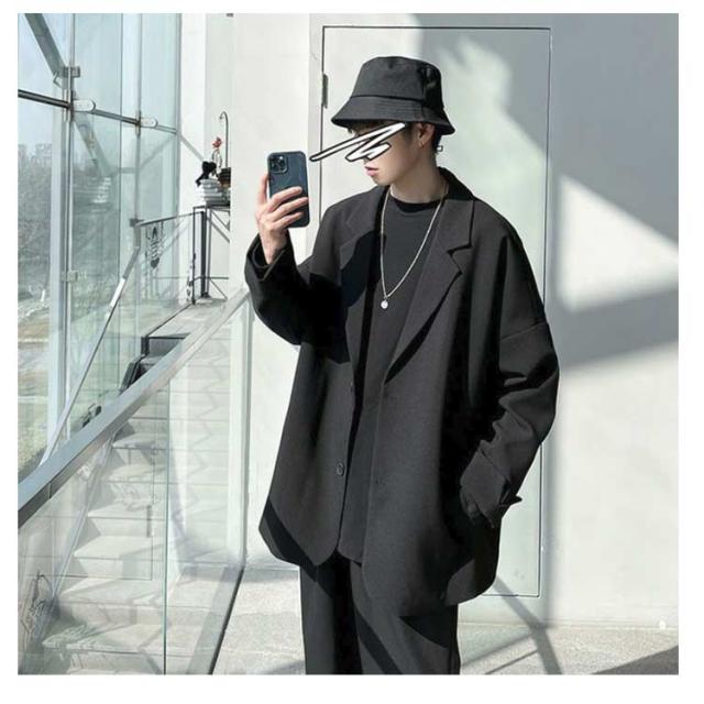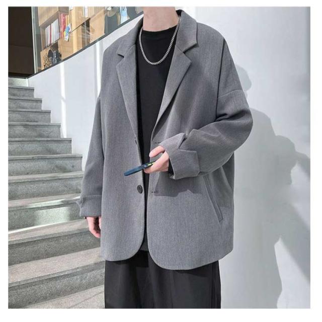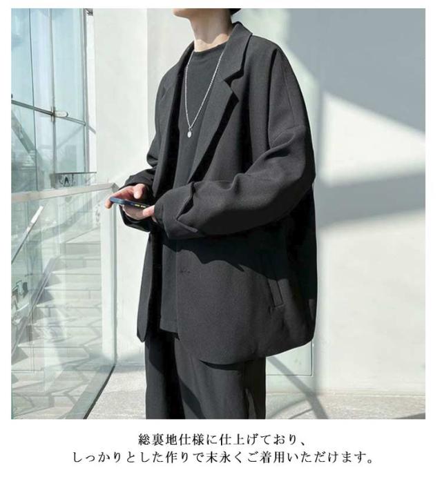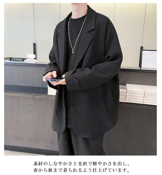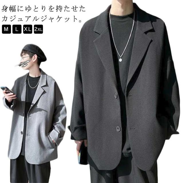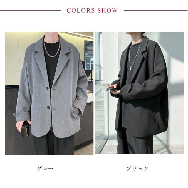メンズ 裏地付き 春 羽織り ゆったり 2B スーツジャケット 秋 アウター 2つボタン 薄手 ライトアウター テーラード オーバーサイズ テーラードジャケット ジャケット カジュアルスーツ グレー 黒 ブラック 大きいサイズ 韓国風 カジュアル おしゃれ