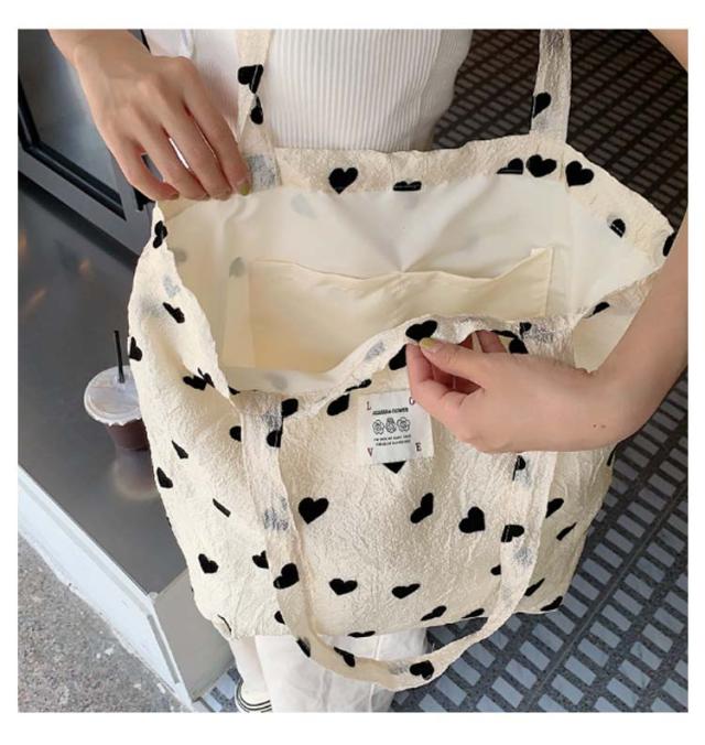 大容量 トートバッグ エコバッグ ハート柄バッグ 手提げバッグ 肩掛けバッグ 可愛い バッグ お買い物 軽量 化粧ポーチ ハート柄 サブバッグ エコバッグ 折りたたみバッグ たためる シンプル ポーチ 韓国風 軽い おしゃれ