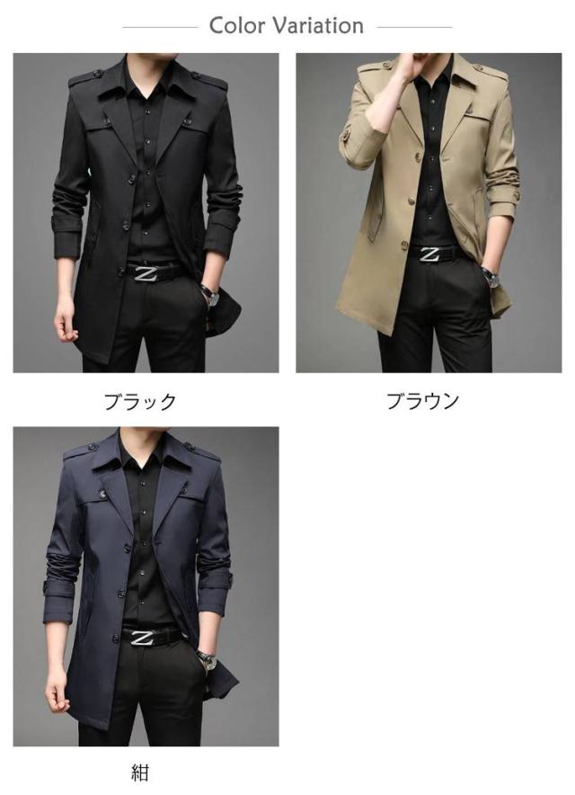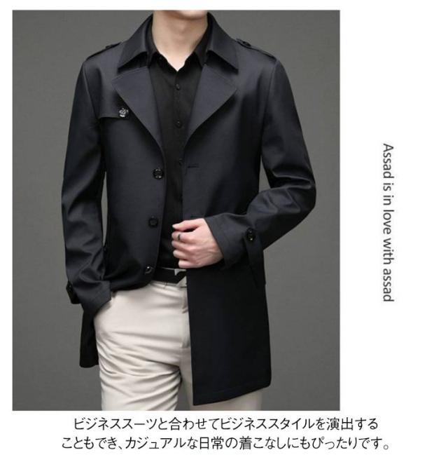 ビジネスコート メンズ フォーマル トレンチコート ミディアム丈 春 コート ビジネスコート ステンカラーコート 秋 紳士服 無地 父の日 誕生日 プレゼント 大きサイズ