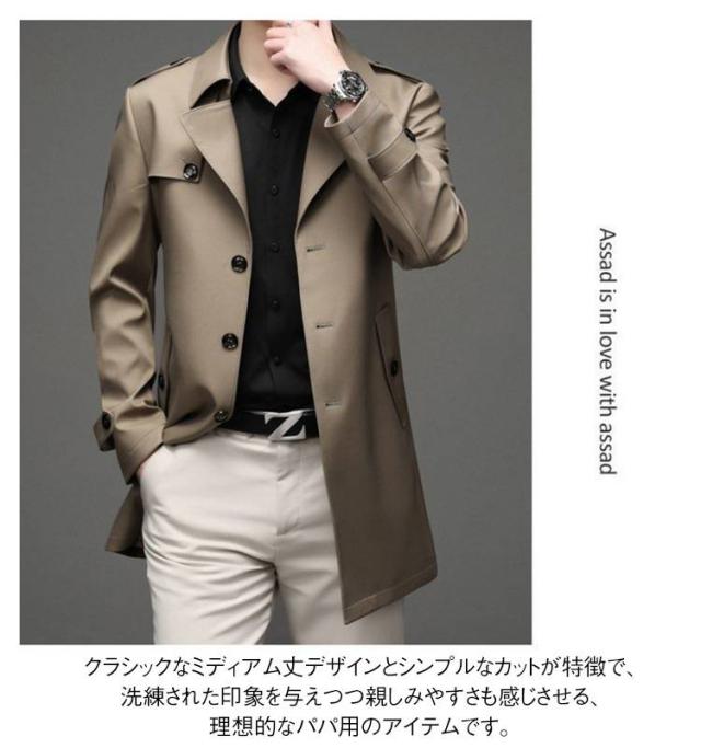 | 春秋シーズンにぴったり一着。 高品質な素材を使用しており、適度な暖かさを提供しつつ、重たく見えない。 ビジネススーツと合わせてビジネススタイルを演出することもでき、カジュアルな日常の着こなしにもぴったりです。 クラシックなミディアム丈デザインとシンプルなカットが特徴で、洗練された印象を与えつつ親しみやすさも感じさせる、理想的なパパ用のアイテムです。 | |