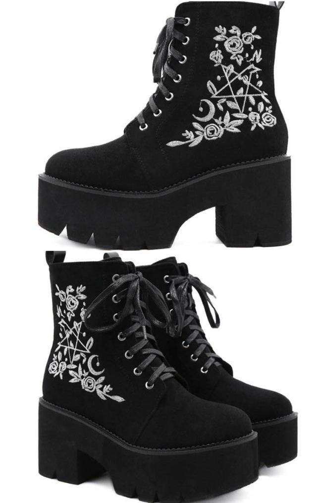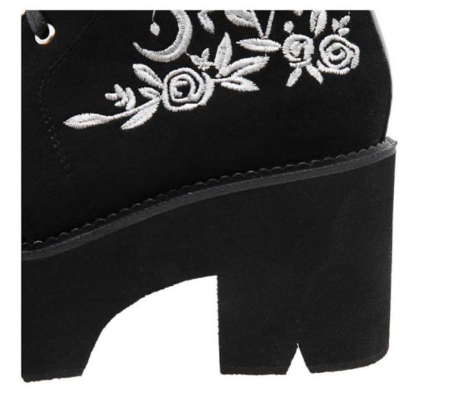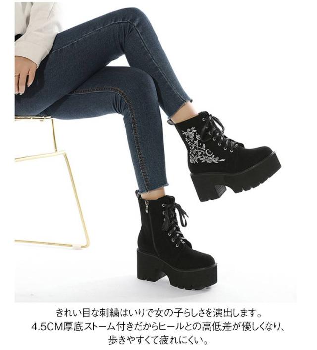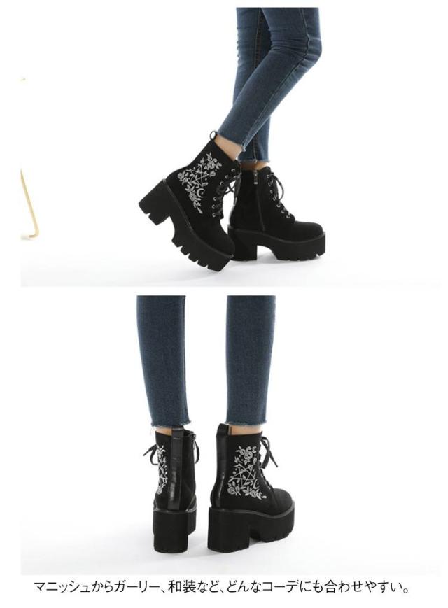8cmヒール サイドジッパー 厚底靴 レディース 刺繍入り 厚底 ブーツ 厚底靴 安定感 太めヒール 歩きやすい 痛くない シューズ 秋冬 きれいめ 美脚