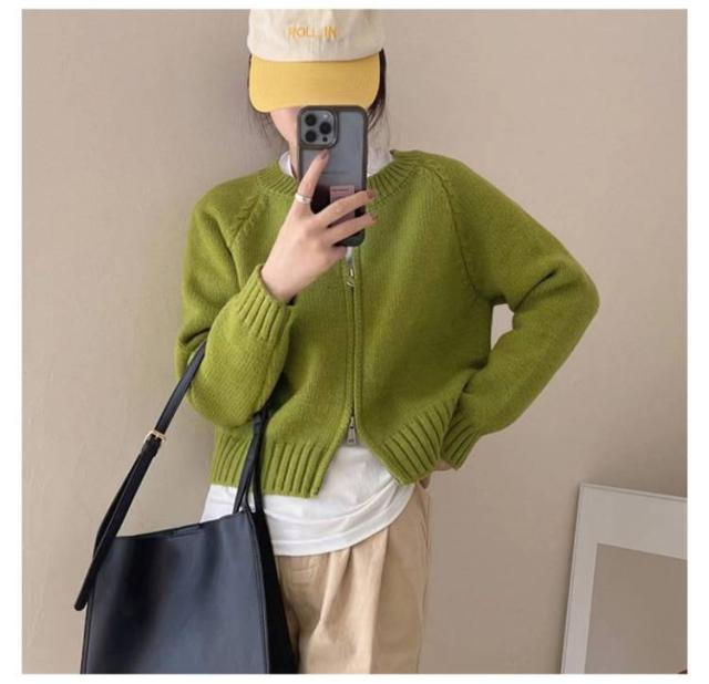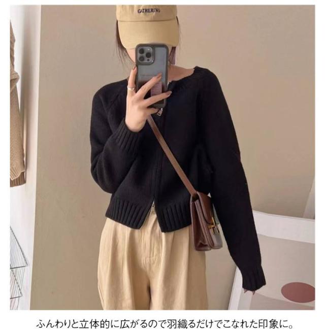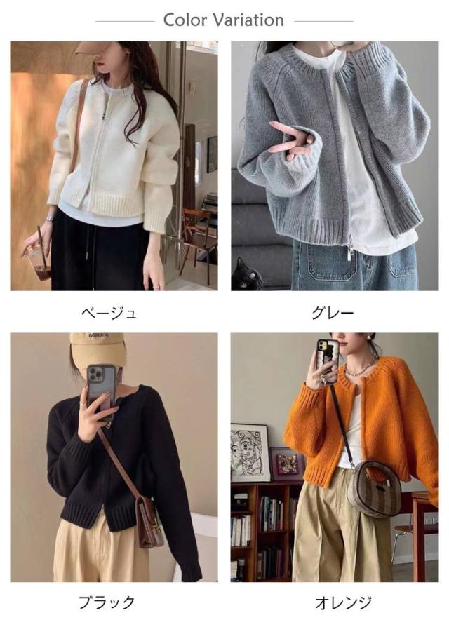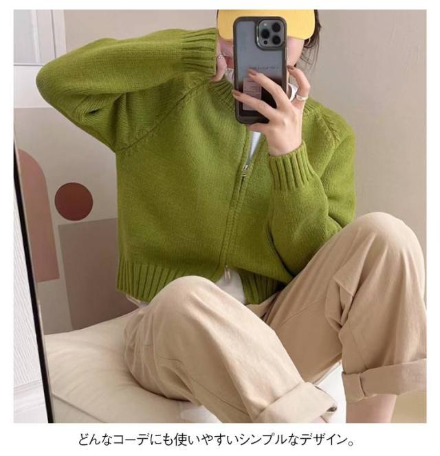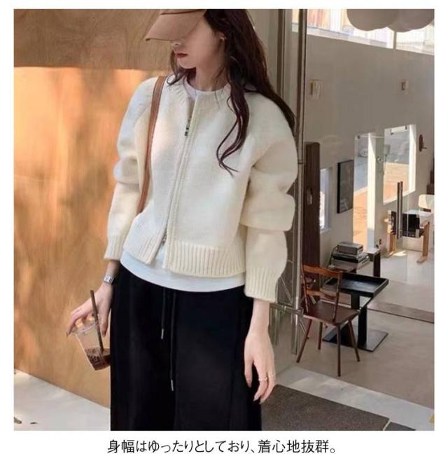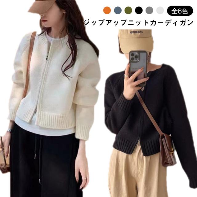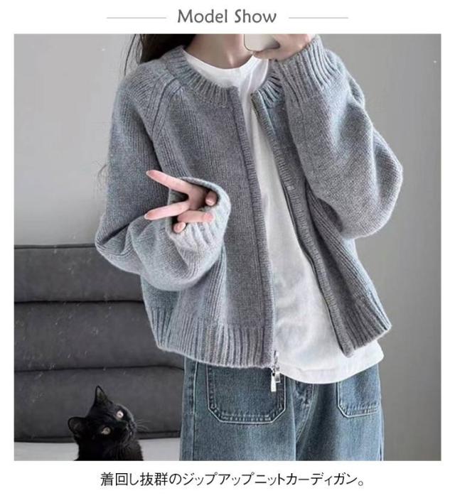 ニットセーター ジャケット 秋冬新作 ゆったり 春服 ニットカーディガン ジップアップ 女性用 カーディガン 丸首 ジップカーディガン 長袖ニットトップス 無地 秋服