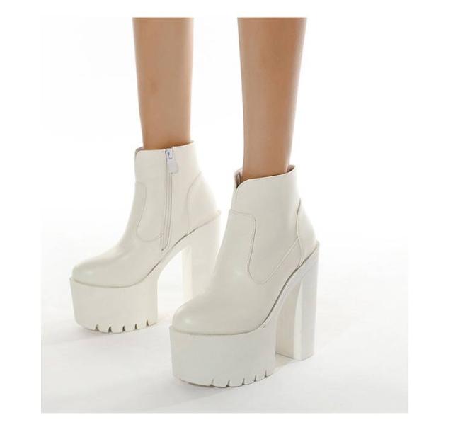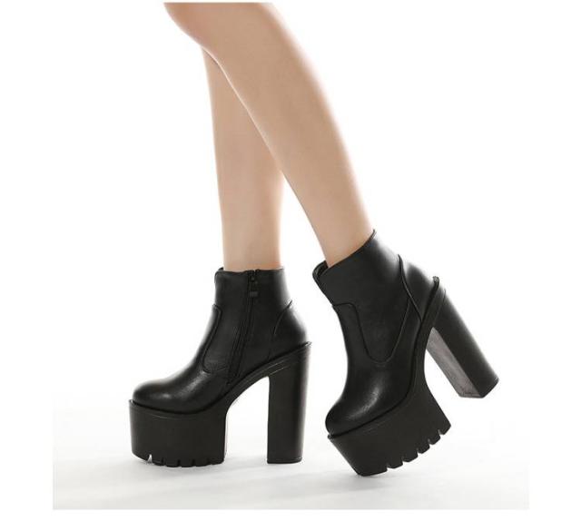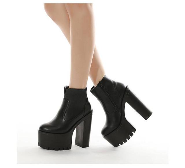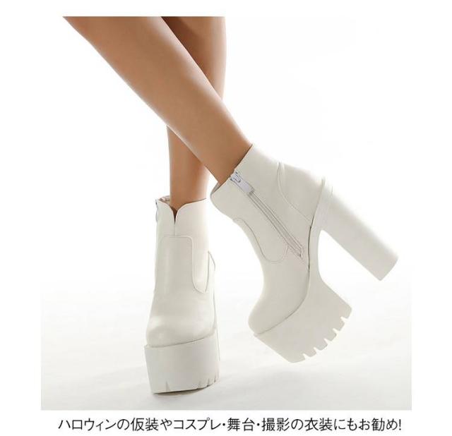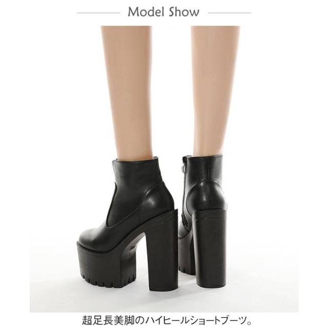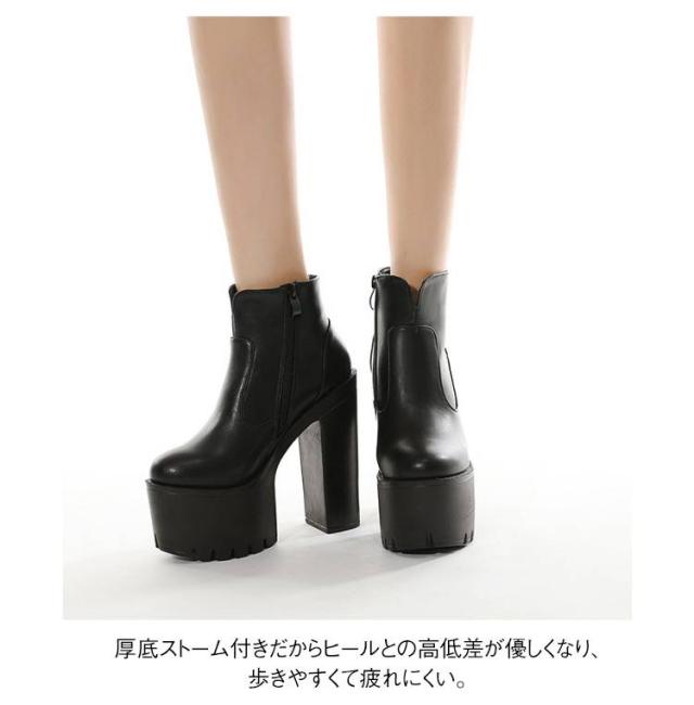 ヒールブーツ 超ハイヒール 太めヒール 美脚 レディース ショートブーツ 超ハイヒール 厚底 厚底靴 安定感 コスプレ 秋冬 大きサイズ イベント ハロウィン 仮装 パーティー ハイヒール 舞台用
