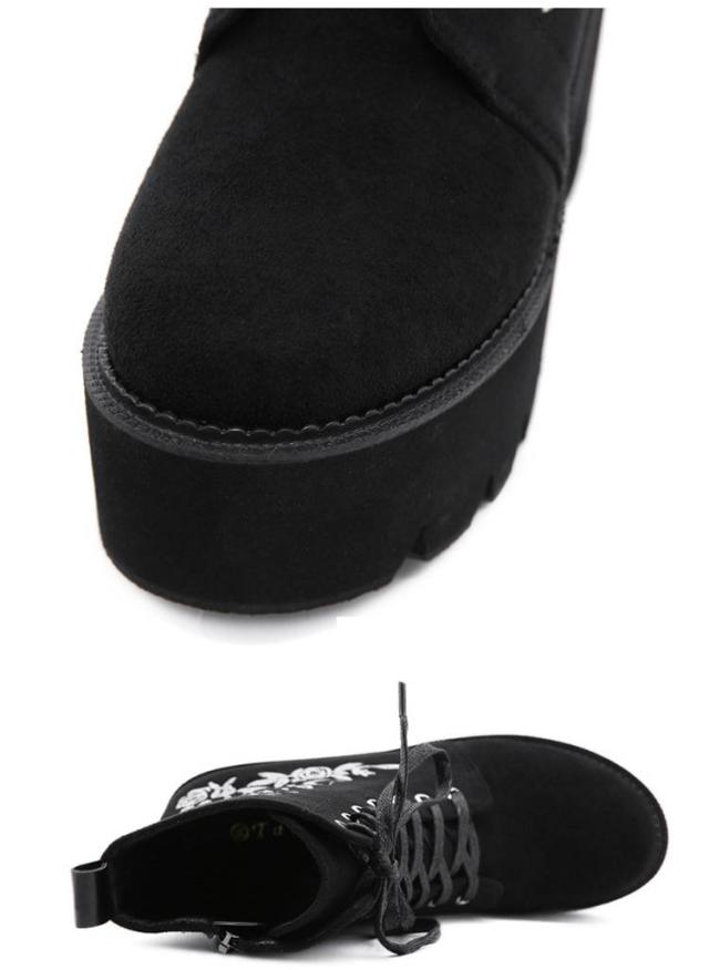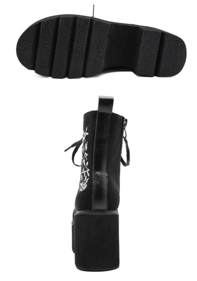 ブーツ サイドジッパー 厚底靴 8cmヒール ショートブーツ 刺繍入り 太めヒール 厚底靴 レディース 歩きやすい 厚底 痛くない シューズ 秋冬 きれいめ 美脚