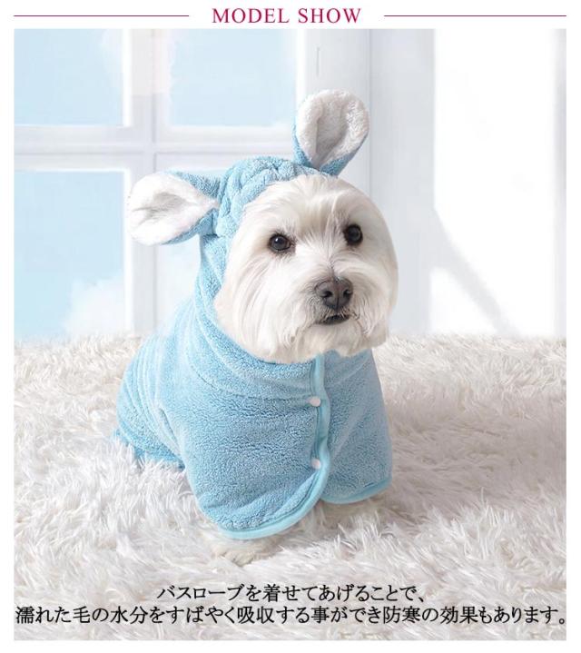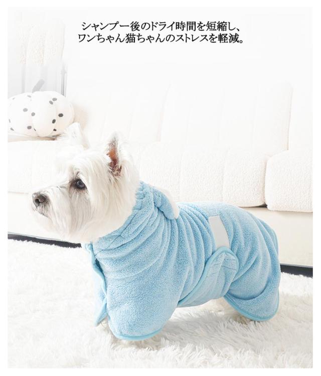 | 超吸水 ペット用着れるバスローブ。 バスローブを着せてあげることで、濡れた毛の水分をすばやく吸収する事ができ防寒の効果もあります。 体を包み込むように拭いてあげるだけで、たっぷり超吸収のふんわり柔らか厚手のペット用タオル。 シャンプー後のドライ時間を短縮し、ワンちゃん猫ちゃんのストレスを軽減。 たっぷり水分を含んだタオルはぎゅっと絞るだけで、元の超吸水力が復活。 シャンプー後はもちろんお散歩後の足洗い後の拭きとりにもおすすめ。 | |