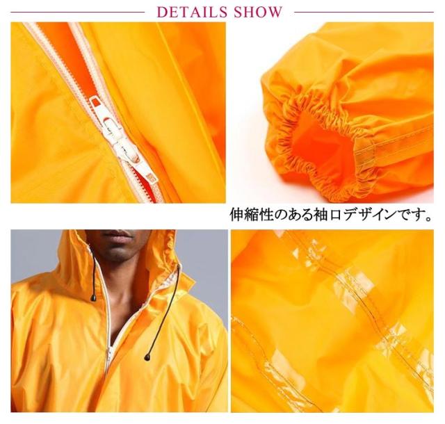 袖口ゴム 防水 レインスーツ レインコート レインウェア 裾ゴム シンプル ロング 反射テープ 雨具 防油 かっぱ ジャンプスーツ メンズ カッパ 大きいサイズ フード付き 対策 雨 レインコート 雨天作業 台風 ハイポンチョ