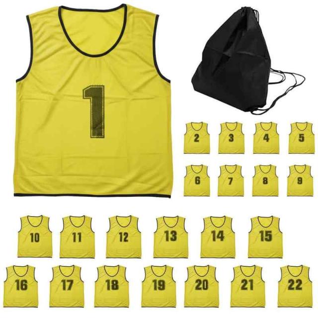 [ロジック] ビブス セット ゼッケン 収納バッグ付き 番号入り メッシュ サッカー バスケ フットサル 学校 行事 自治体 運動会 22枚セット (子供用, イエロー)