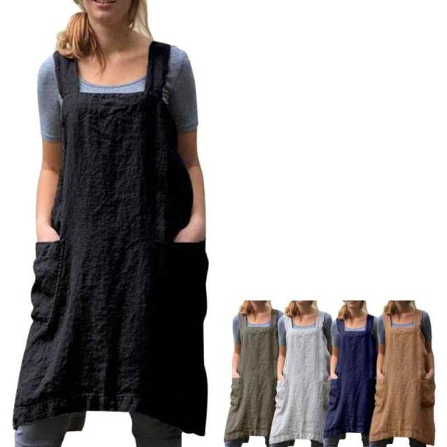 [RioSole] レディース クロスバックエプロン 綿麻素材 前ポケット付き ゆったり大きめサイズ ガーデニング 家事用 保育士にも (4XL, ブラック)