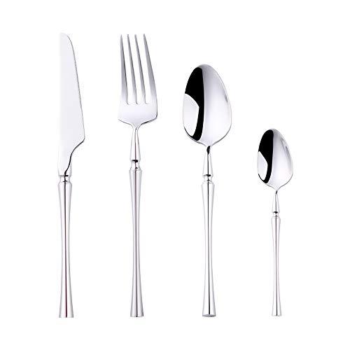 Buyer Star ステンレス カトラリーセット 4点セット ナイフ フォーク スプーン ティースプーン 北欧風 一体型 ディナーセット 高級洋食器 鏡面仕上げ 食洗機対応 (シルバー)