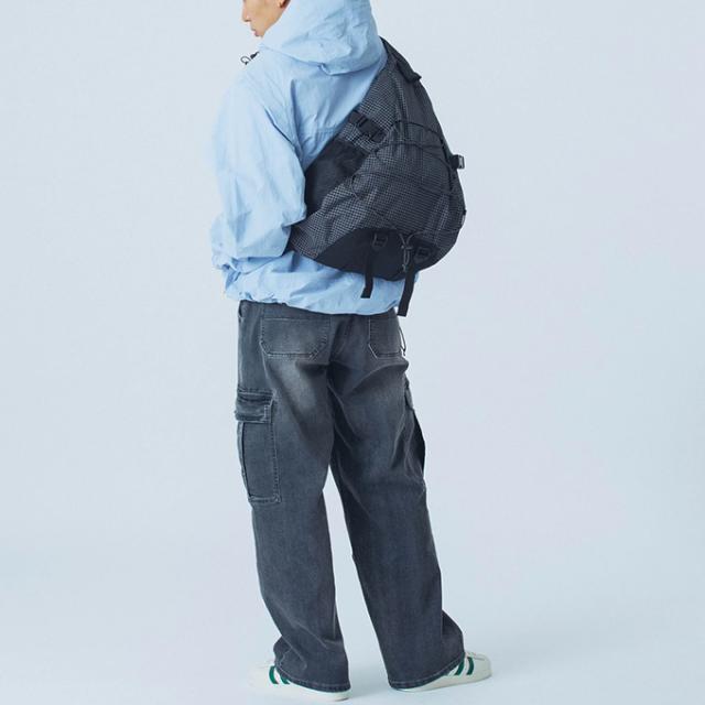 軽さと強度が魅力のリップストップ素材を使用した大きめのワンショルダーバッグ。