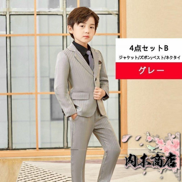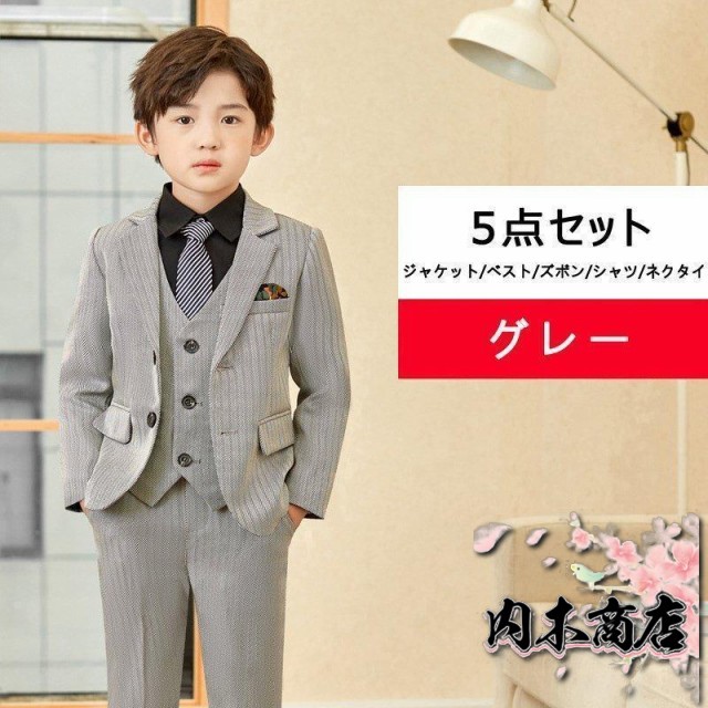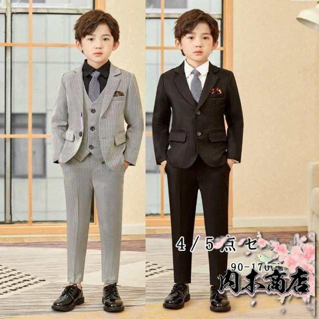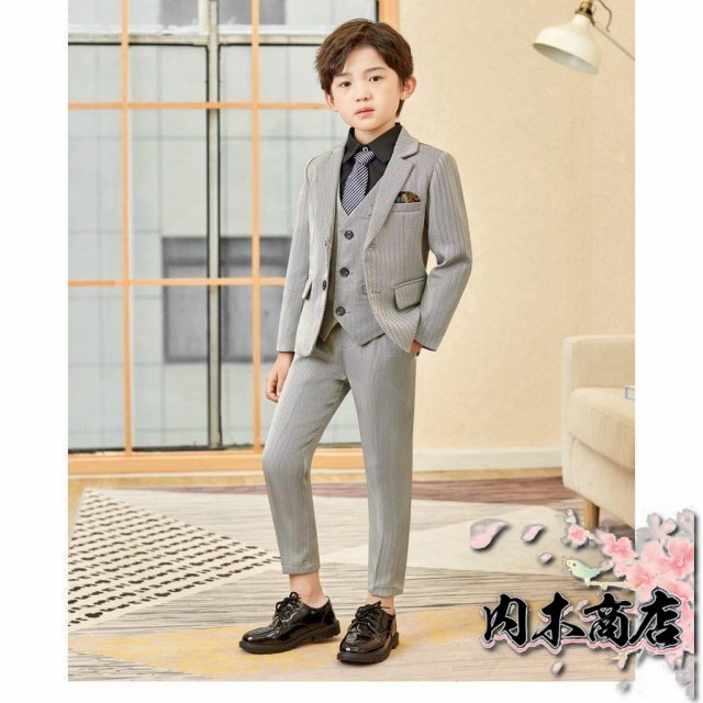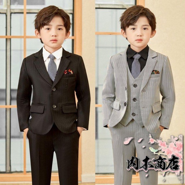 小学校 卒業式 子供服 入学式 スーツ 男の子 キッズ ワイシャツ ネクタイ ブレザー ベスト ズボン フォーマル スーツ 男の子 おしゃれ 縦ストライプ 長袖