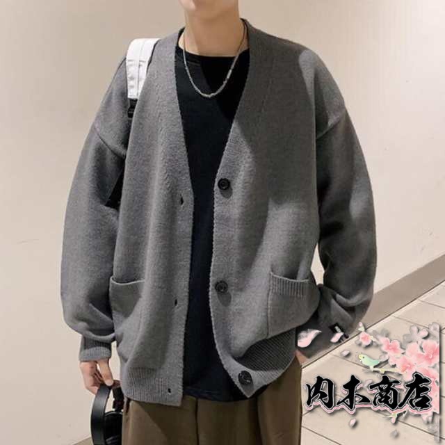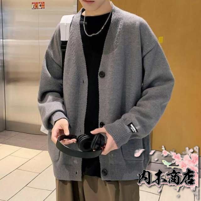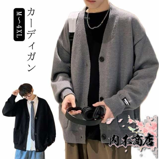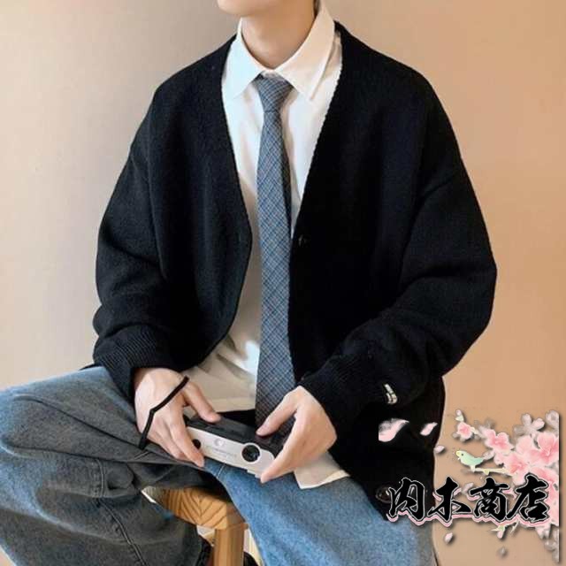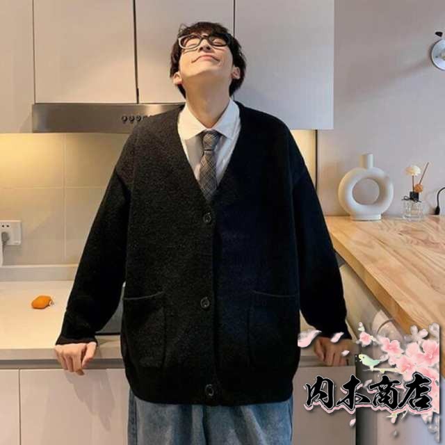 おしゃれ メンズ カーディガン アウター ニット スクール セーター 秋 送料無料 黒 白 あったか ストリート系 学生 ニットカーディガン
