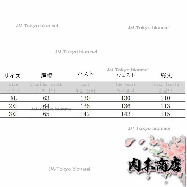 3XL着丈115cm/バスト142cm/肩幅-袖丈65cm/ウエスト142cm