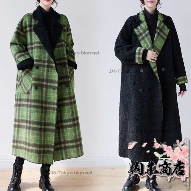 注目ランキング上位 売上急増中 レディース 防寒 ギフトにも最適 チェスターコート 冬用 収納便利 チェック柄 アウター ロングコート 裏ボア 裏ボアコート 両面着れる ボアコート 大きいサイズ 送料無料 クリスマス 冬物