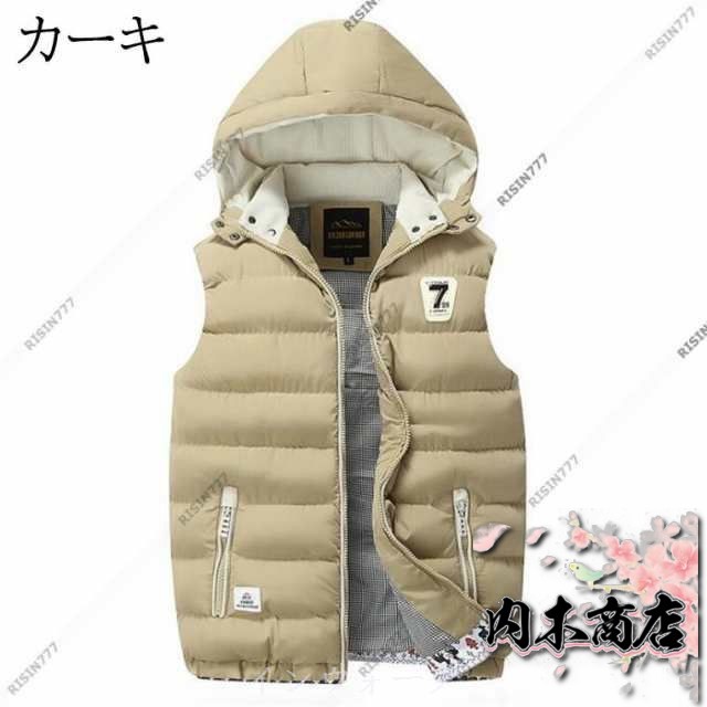 ダウンベスト メンズ 中綿 袖無し フード付き おしゃれ コート 男性 20代 30代 40代 暖かい 厚手 冬服 アウトドア ジャケット 大きいサイ