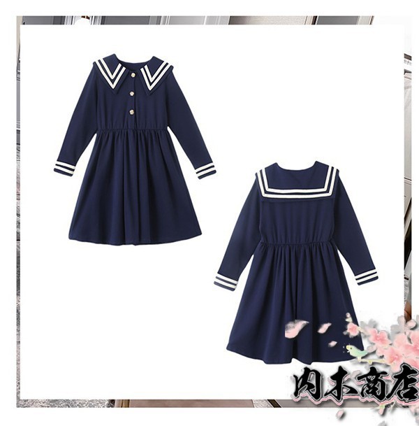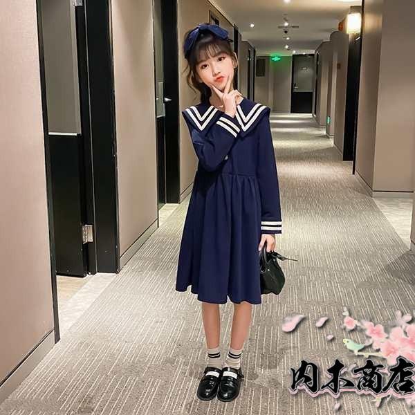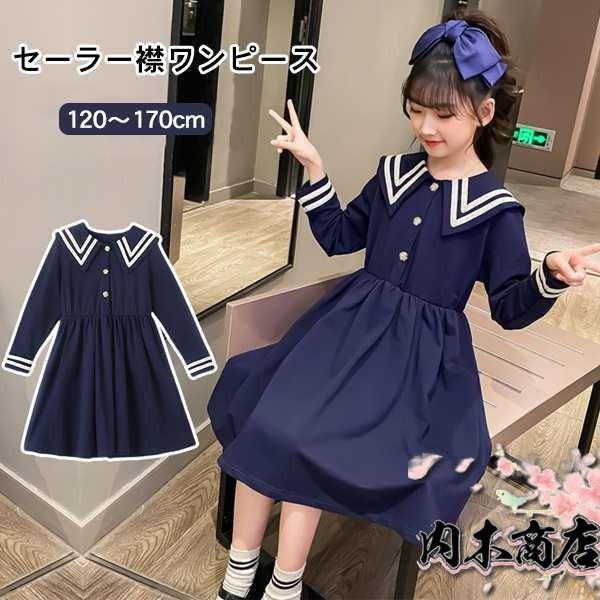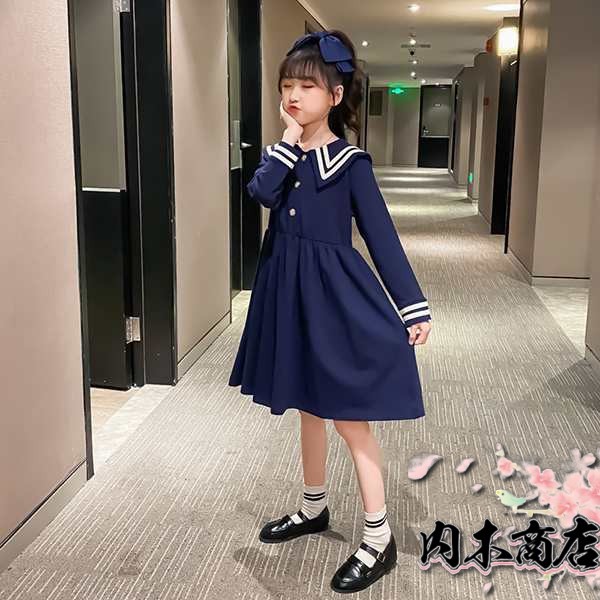 セーラー服 キッズ ワンピース 森ガール 制服 卒業式 スーツワンピース 女の子 膝丈 ワンピース レディース 長袖 フォーマル セーラー風 学院系 子供制服 長袖 キッズ セーラー襟 フレア ジュニア 卒園式 入学式 学生服