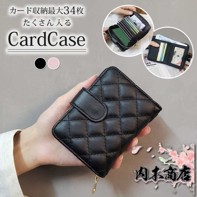 カードケース レディース 大容量 最大34枚収納 おしゃれ キルティング 二つ折り 取り出しやすい じゃばら スナップボタン ファスナー お札 紙幣 小銭入れ コインケース クレジットカード 名刺入れ ICカード 免許証 診察券 保険証 合皮 フェイクレザー エレガント フェミニン