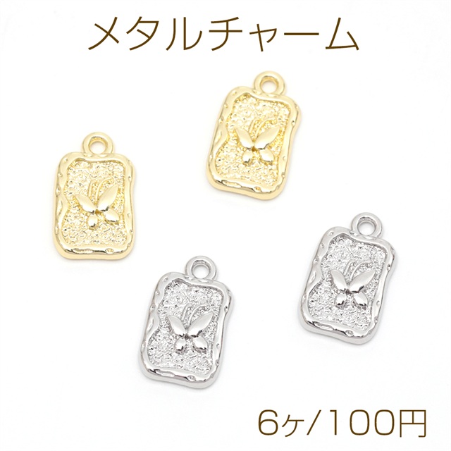 メタルチャーム 蝶チャーム 蝶々 ペンダント 合金製 約9×15mm(6ヶ)