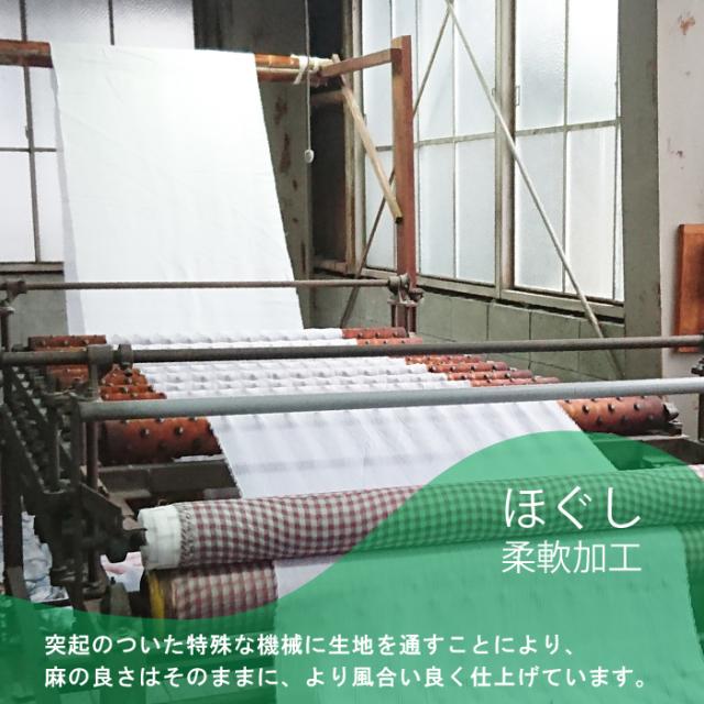 特殊な機械に生地を通し、麻本来のシャリ感を残しながら、