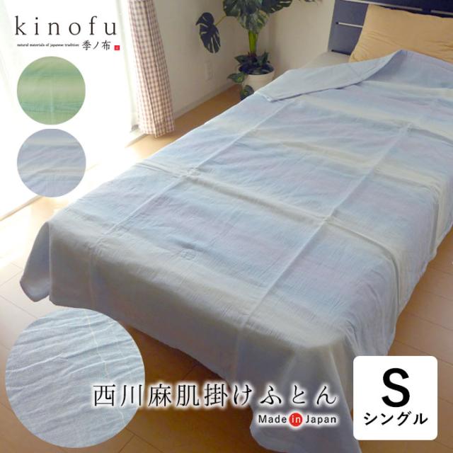 日本製 季ノ布 西川 麻肌掛け布団 シングル 150×210cm ブルー グリーン グラデーション 麻の中綿 近江ちぢみ 夏用 肌布団 洗える 夏布団 夏ふとん 肌ふとん 肌掛布団 肌掛け布団 掛け布団 掛けふとん 父の日 母の日 贈り物 ギフト セール AE04402040