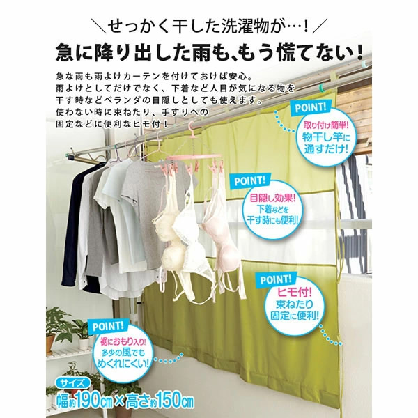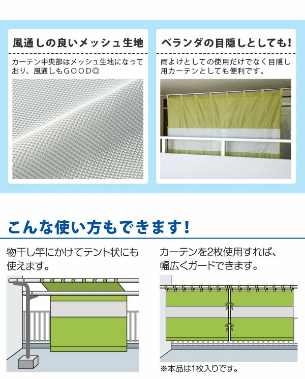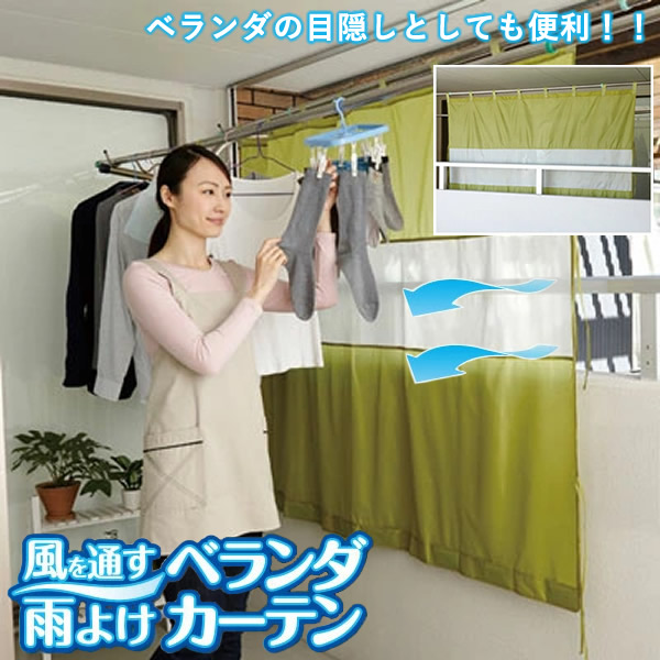 風を通す雨よけベランダカーテン (メール便送料無料) 雨よけ 目隠し 日よけ ベランダカーテン 雨よけシート 洗濯物 防水 シェード プライバシー保護 鳥よけ メッシュ素材