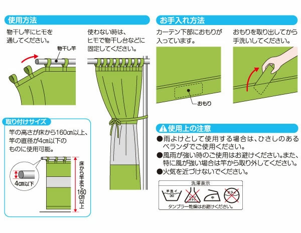 雨よけ 目隠し 日よけ ベランダカーテン 雨よけシート 洗濯物 防水 シェード プライバシー保護 鳥よけ メッシュ素材 取り付けカンタン ベランダ 物干し竿 物干し
