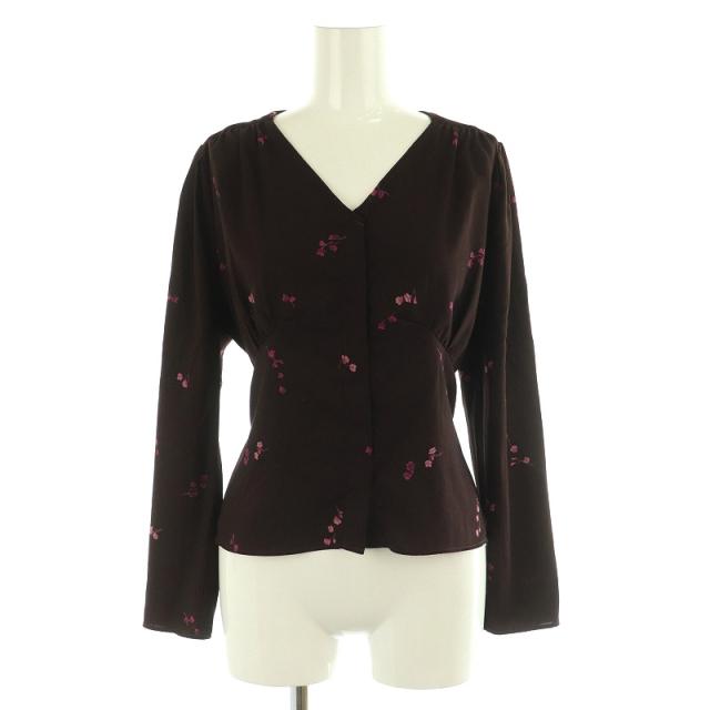 【中古】スナイデル SNIDEL パウダリージョーゼットプリントブラウス 長袖 Vネック 花柄 1 ダークブラウン