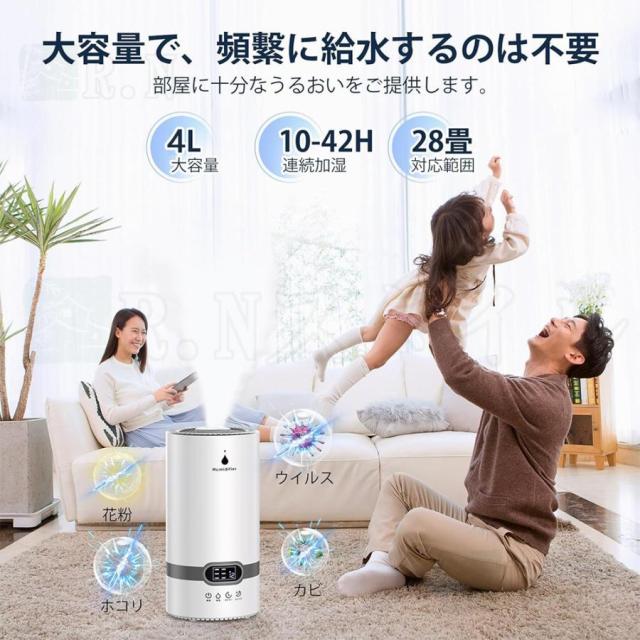 加湿器 超音波式 アロマ対応 大容量 4L 最大24畳対応 省エネ 上部給水 加湿機 空焚き防止 自動湿度調整 タイマー付き お手入れ 簡単 乾燥対策 ウイルス対策 2024