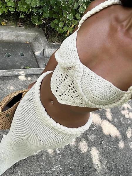 女性用2ピースニットショートトップとスカートセット,ノースリーブ,ホルタースリング,タンクトップ,ロング,ヒップパッケージ,ビーチ,バケーション,レディース,2022