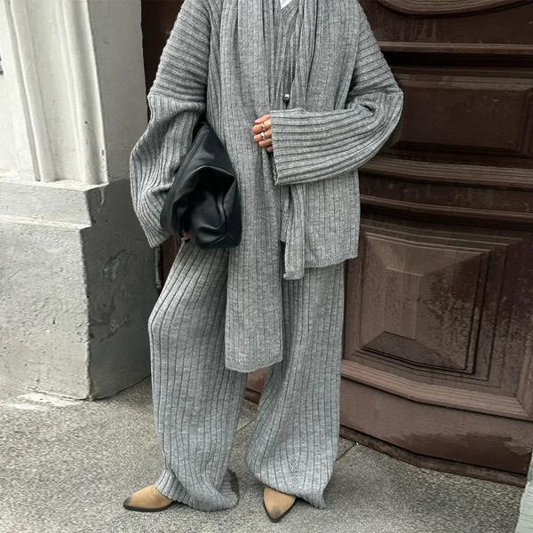 女性用シングルブレストニットカーディガンとミニスカートのセット,長袖セーター,ハイウエスト,グレー,秋,2ピース,2024