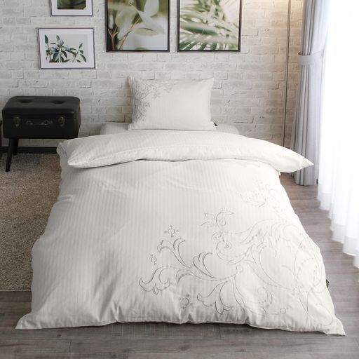 メリーナイト 掛け布団カバー INICO (イニコ) 「クレール」 アイボリー シングルロング 約150×210CM 綿100% サテン織ストライプ 刺繍入り 上品な光沢感 洗える IN25051-07
