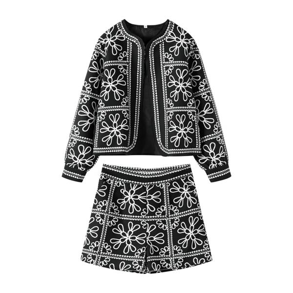 女性用ショーツ付き2ピーススーツ,長袖ジャケット,ワイドレッグショーツ,プリントコットン,レディースセット,ファッション,冬,2024