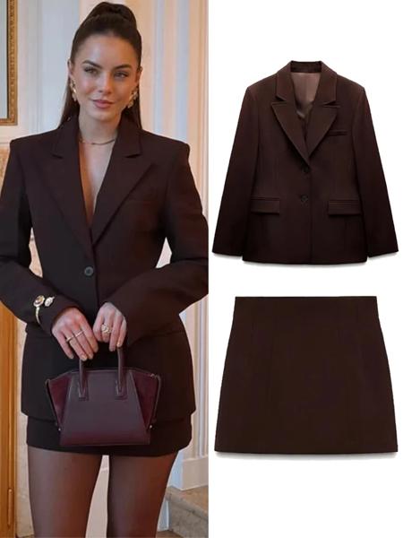 エレガントな女性のオフィスブレザーセット,ショルダーパッド,ラペル,長袖,ジャケットスーツ,スリムなヒップパッケージ,ミニスカート,2022