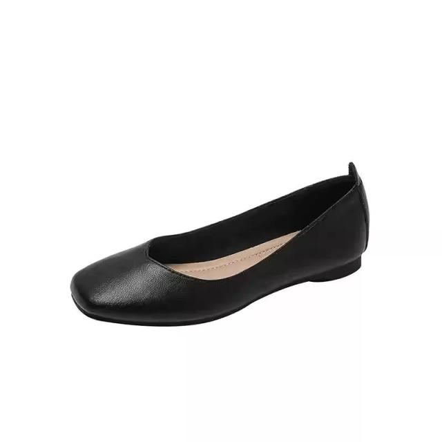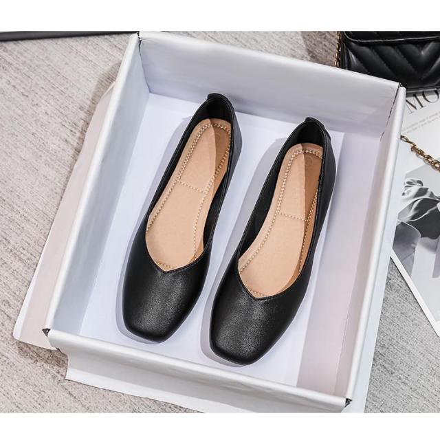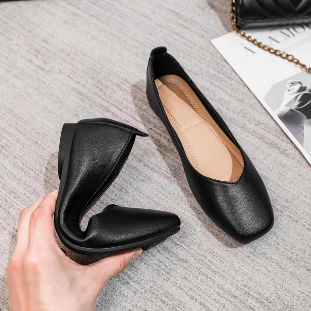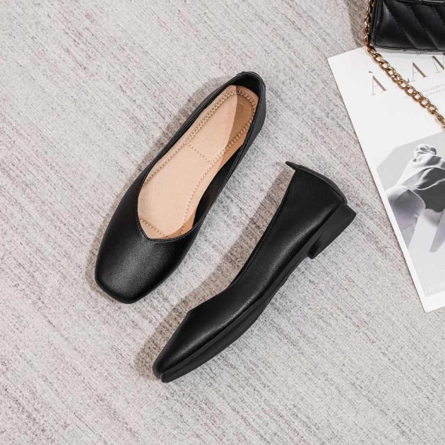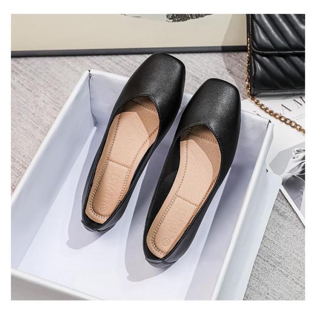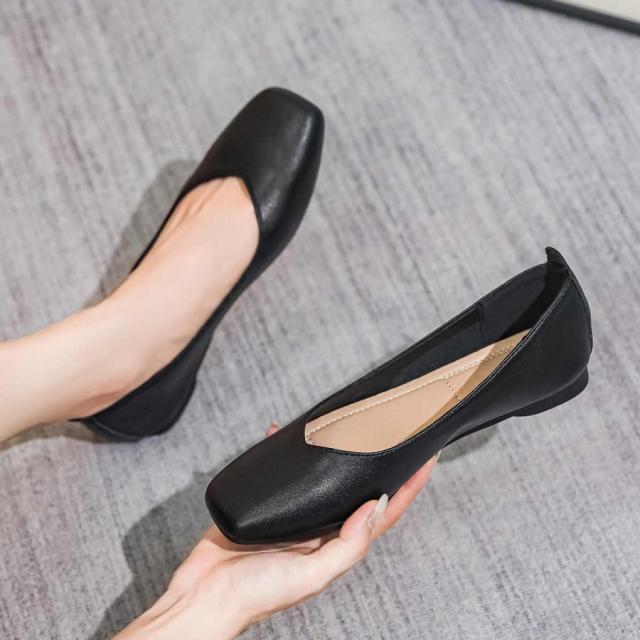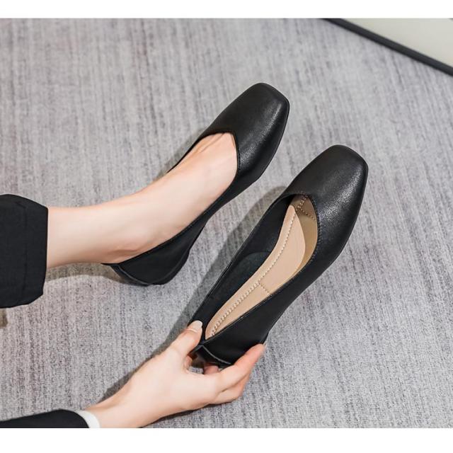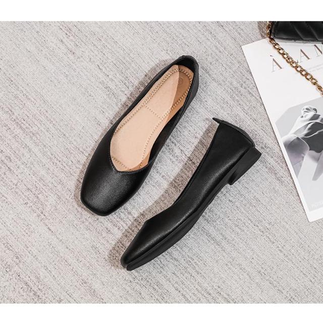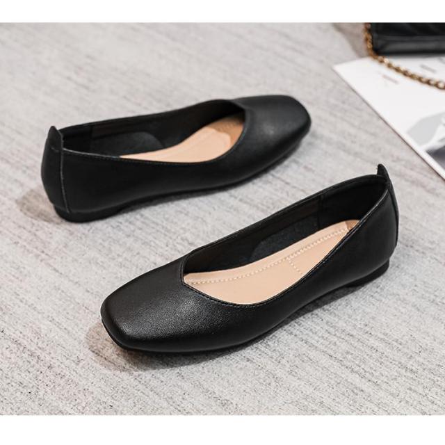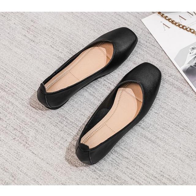 パンプス ぺたんこ ローヒール 走れる 痛くない 歩きやすい フラットシューズ フラットパンプス レディース フラット スクエアトゥ ペタンコ スムース 黒
