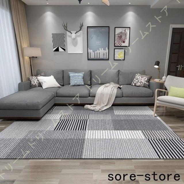 ラグマット 北欧 洗えるラグ カーペット 幾何柄 おしゃれ 滑り止め付 カーペット ポリエステル 防臭 防ダニ加工 モノトーン 長方形 ラグ 床暖房