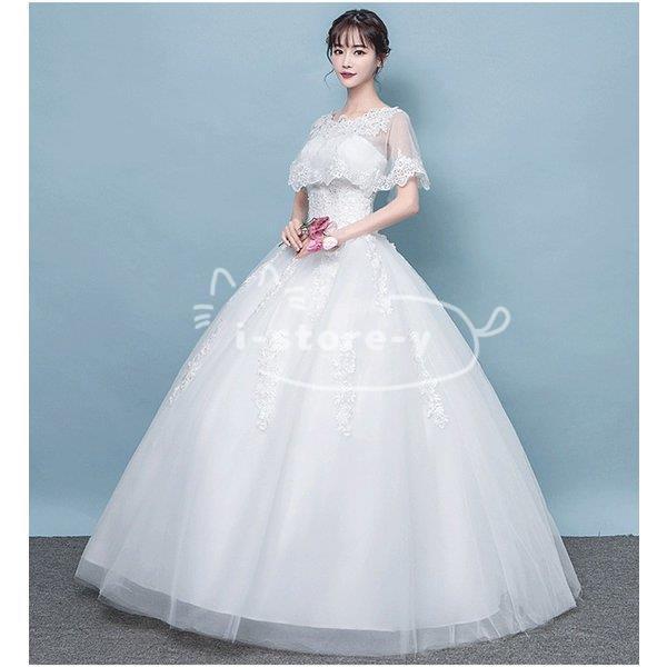 ウエディングドレス 結婚式 五分袖 プリンセス エンパイア 花嫁 ドレス 白 披露宴 ロングドレス ブライダル 姫系 大きいサイズ