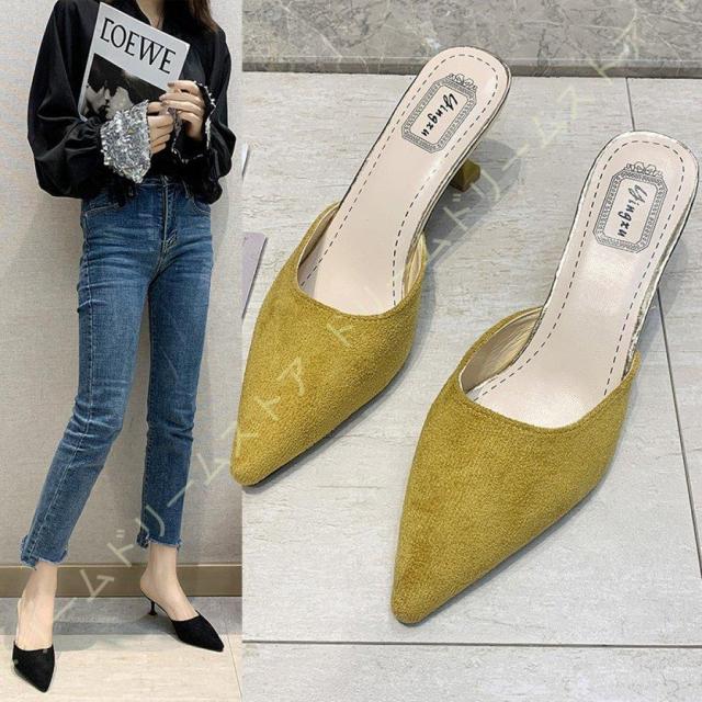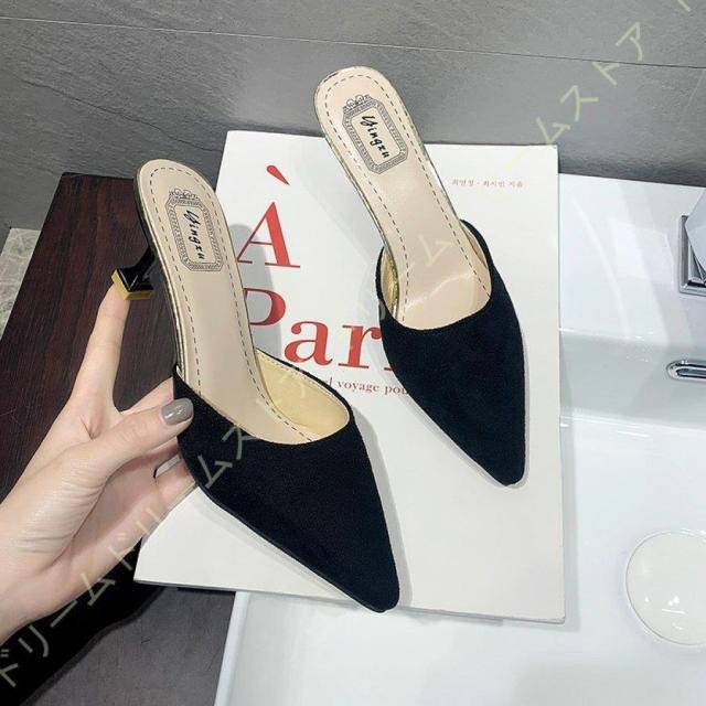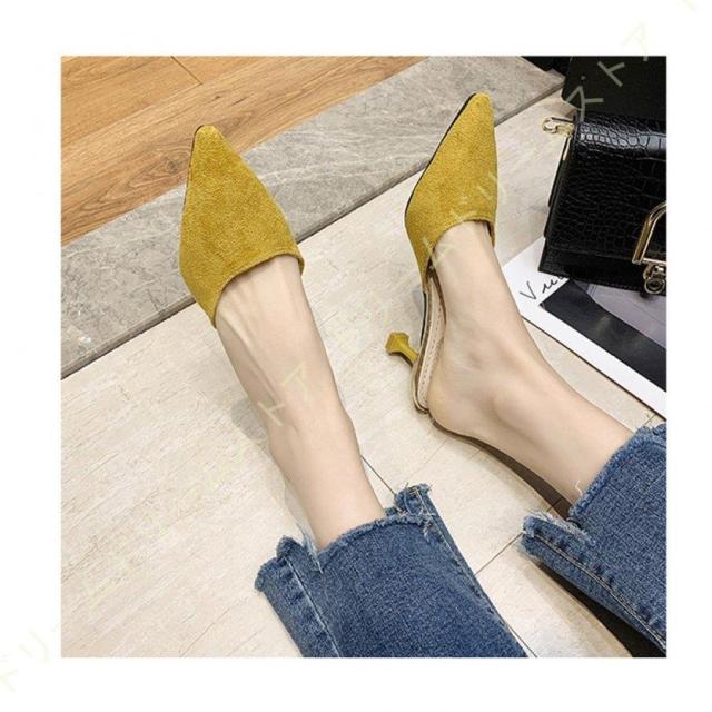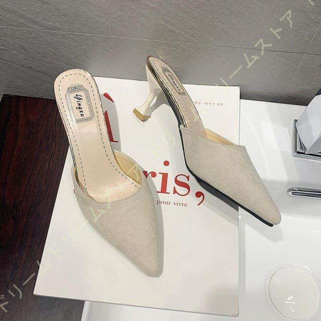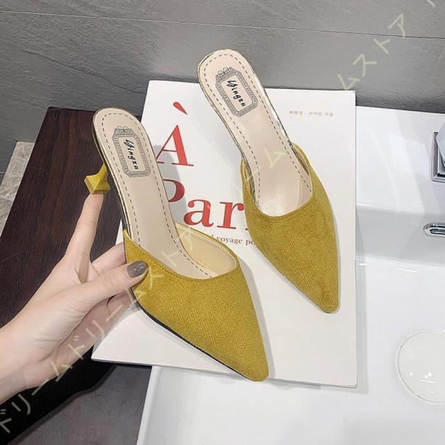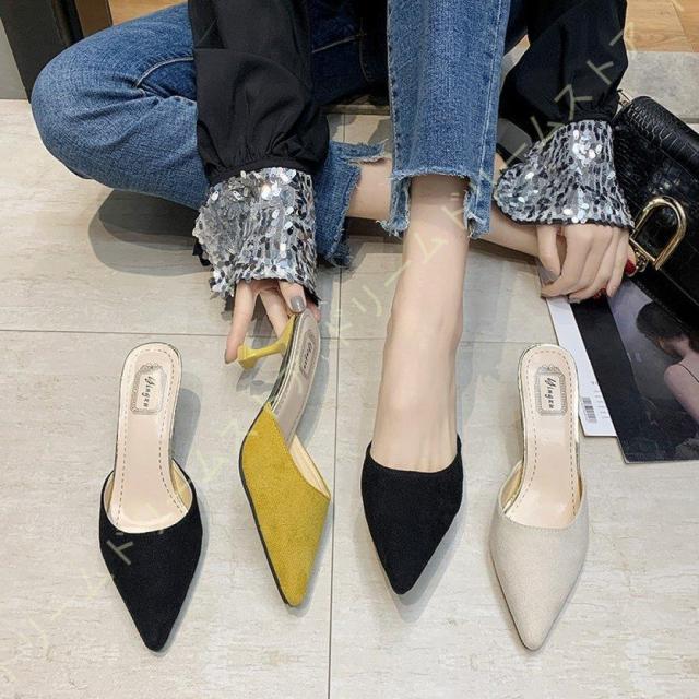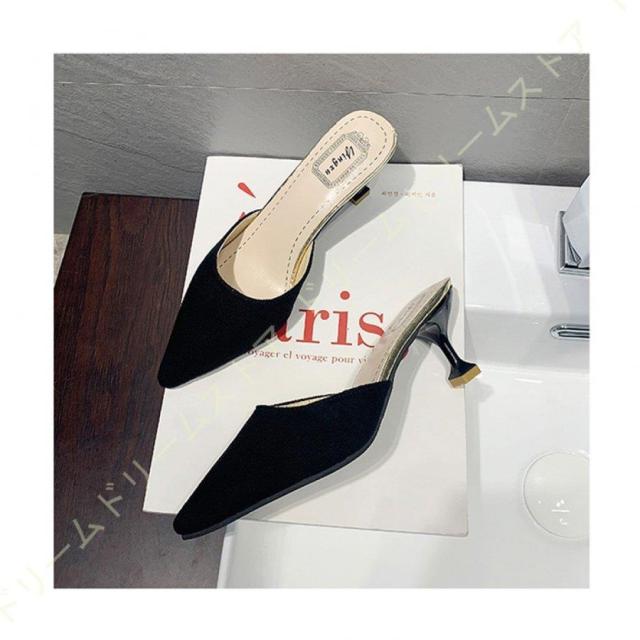 サンダル ミュール ヒール オフィス 疲れない ハイヒール ピンヒール ミュール パンプス レディース 6cm サボ 黒 ポインテッドトゥ 大きいサイズ 婦人靴