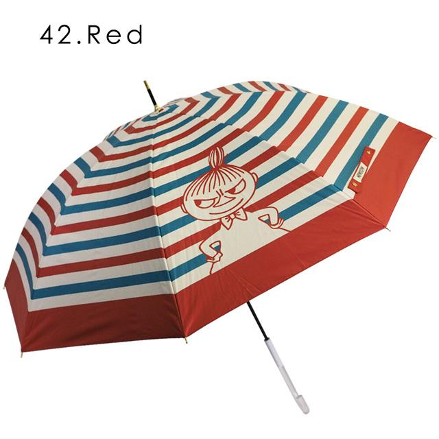 【在庫一掃★ラスト1点】傘 長傘 晴雨兼用 リトルミイ ムーミン MOOMIN ボーダー 雨傘 日傘 手開き 手動 親骨60cm ブラックコーティング UVカット 遮光 遮熱 撥水加工 軽量 カーキ レッド レディース かわいい おしゃれ 北欧 ギフト プレゼント【 同梱不可 】【 誕生日 】