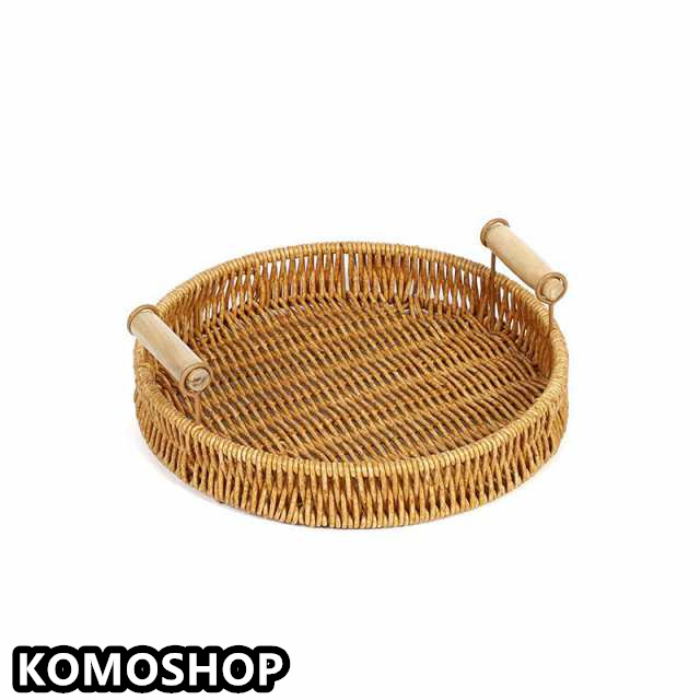 トレー ラタントレー トレイ お盆 籐 おしゃれ 手織り お家カフェ ランチプレート 食器 丸 カフェ 北欧 韓国 軽量