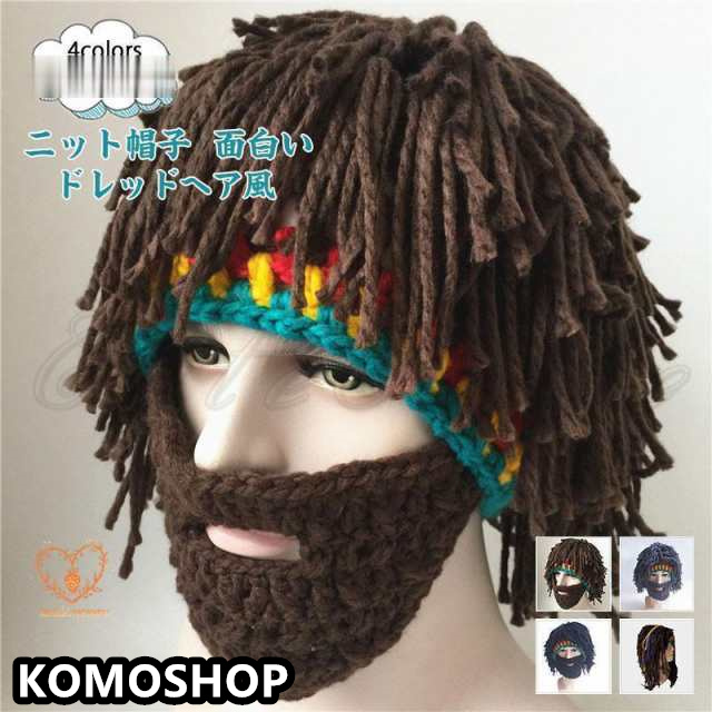 ニット帽子 レデイース メンズ ニットキャップ ドレッドヘア風 ヒゲ風のマスク付き コスチューム 面白い 仮装 変装 コスプレ 男女兼用 秋冬 おしゃれ