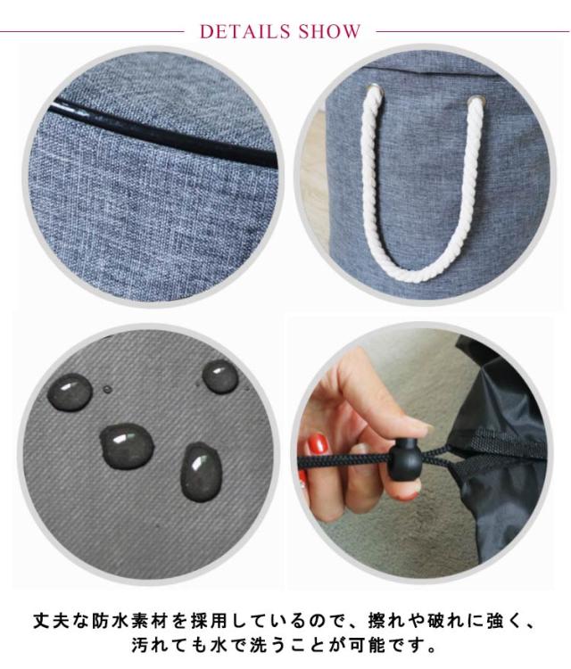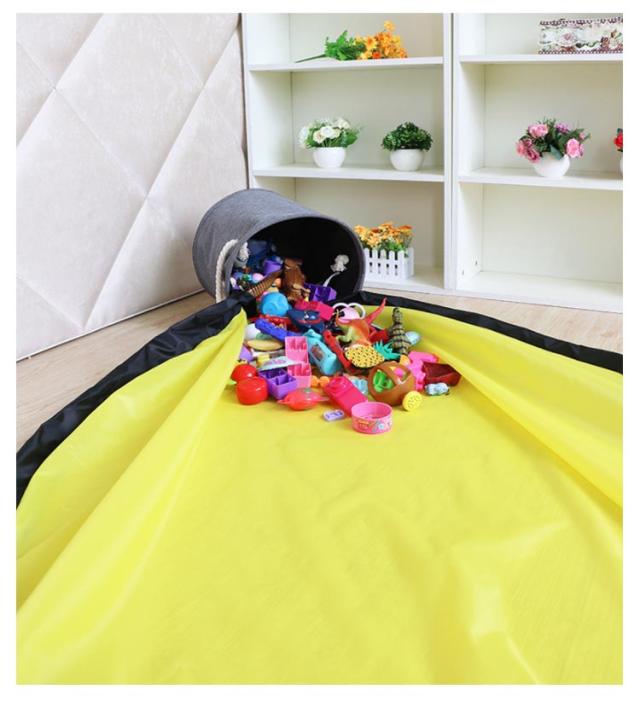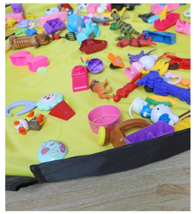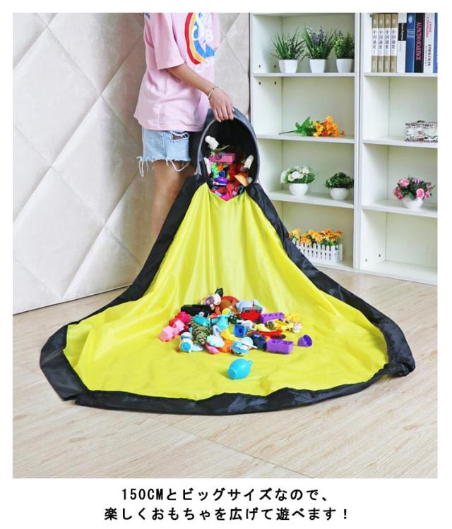 | 2WAYの収納バスケット。 おもちゃが散らばらないように遊べる! プレイマット仕様にもなる! おもちゃの紛失を防ぎ片付け簡単。 150cmとビッグサイズなので、楽しくおもちゃを広げて遊べます! 丈夫な防水素材を採用しているので、擦れや破れに強く、汚れても水で洗うことが可能です。 | |