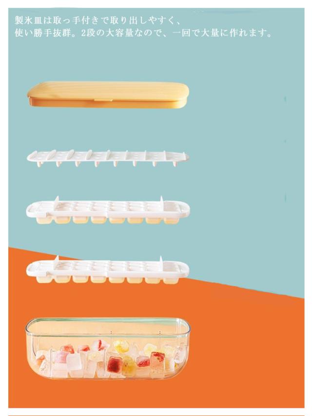 製氷器 保存ケース 宅飲み アイストレー スコップ付き 手を触れずに簡単取り出す 製氷皿 冷蔵庫専用 氷 蓋付 漏れ防止 超低温耐性 冷たい飲み物 ジュース 方型氷 製氷 ビール 夏休み 2段