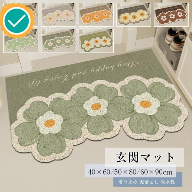 玄関マット おしゃれ 室内 屋外 ドアマット 滑り止め付き ラグマット 花柄 かわいい 雨 雪 泥落とし エントランス トイレ キッチンマット