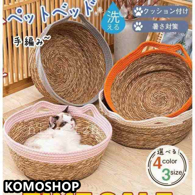 ペットベッド 中型犬用 洗える 手編み クッション付け 犬用品 ねこ用品 ペット カゴ 籠 ペット寝具 犬ベッド 猫ベッド 丈夫 通年 衛生的