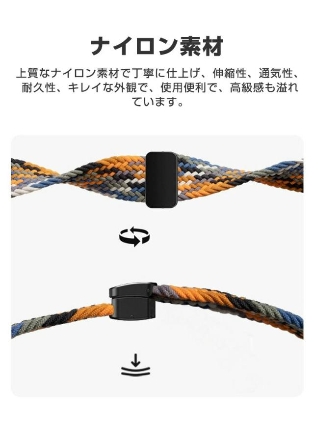 | 特徴 | 【ナイロン素材】上質なナイロン素材で丁寧に仕上げ、伸縮性、通気性、耐久性、キレイな外観で、使用便利で、高級感も溢れています。 【簡単装着】簡単な装着も脱着も可能です、専用に作られたファッション性の高い交換用バンド。 【 男女兼用 ・高級感溢れ】シンプルで高級感溢れるデザイン、きれいなカラーは老若男女問わず、通勤・旅行・日常生活の様々なシーンに対応します。お友達や家族にもギフトとしておすすめます。 【商品品質】 商品の管理・品質については万全を期しておりますが、万一ご注文と異なる商品・不良品が届いた場合は 商品到着後7日以内にお問い合わせフォームにてお名前・受注番号などをご記入の上、ご連絡頂いた場合のみ対応となります。 | |||||