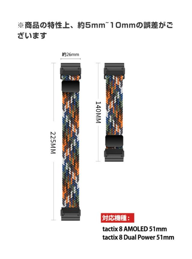 ガーミン Garmin Descent G2 tactix 8 AMOLED tactix 8 Dual Power 51mm 交換 時計バンド オシャレな ナイロン素材 おしゃれ 腕時計ベルト 交換用 ベルト 替えベルト 綺麗な マルチカラー 簡単装着 人気 おすすめ 交換リストバンド 腕時計バンド 交換ベルト