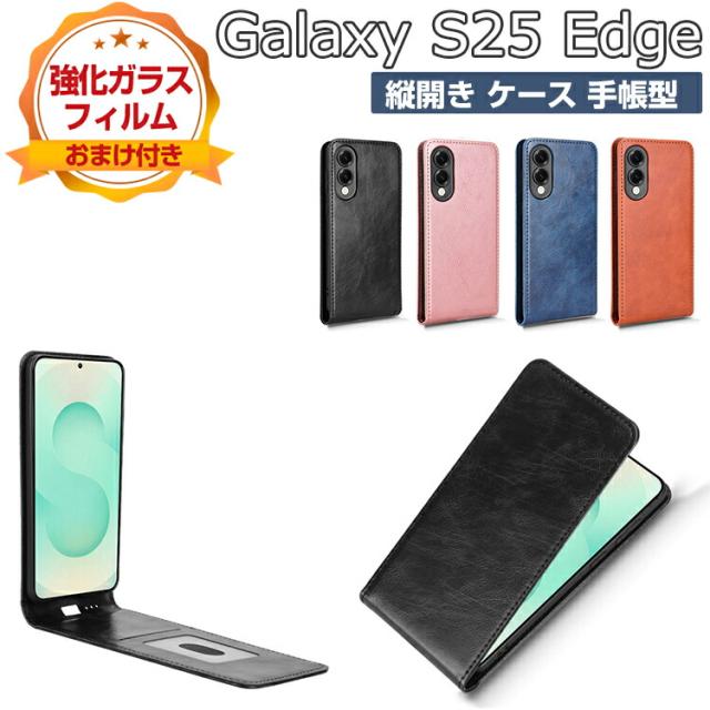 Galaxy S25 Edge ケース 耐衝撃 カバー フリップ式 財布型 縦開き 縦型 下開き TPU+PUレザー 汚れ防止 カード収納 ストラップホール付き 便利性の高い Samsung サムスン ギャラクシー S25 エッジ ケース 手帳型 カバー CASE 強化ガラスフィルム おまけ付き
