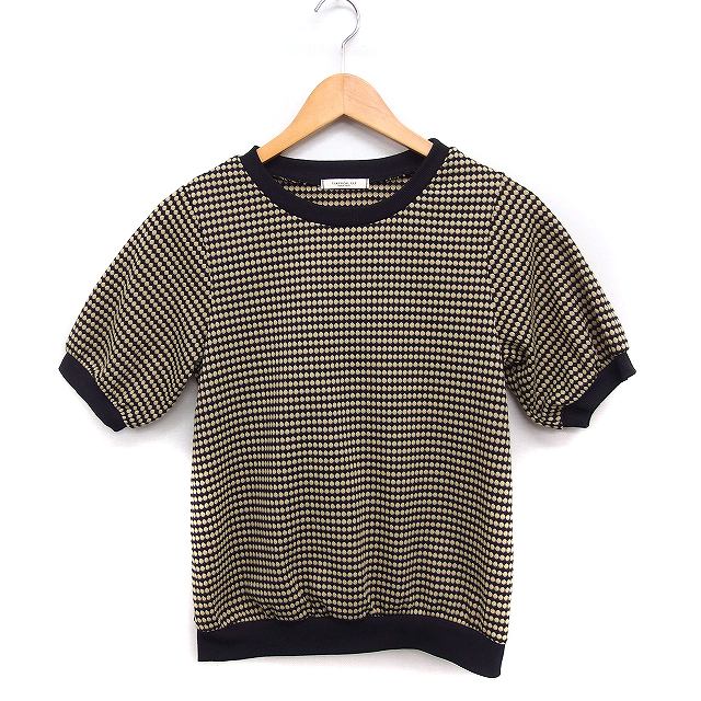 【中古】クラシカルエルフ CLASSICAL ELF ハニカム柄 ジャガード ニット セーター 半袖 丸首 M ブラック 黒 /FT42